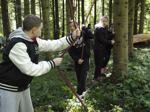 Waldstück waren noch weitere kooperativ heraufordernde Aufgaben aufgebaut, an denen sich die Klassen heranwagen und ihre Klassengemeinschaft unter Beweis stellen konnten. So gab es für die Klasse