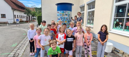 Eine künstlerisch gestaltete Litfaßsäule ist das neue Markenzeichen der Nendinger Donauschule. Das gemeinsam mit den Schüler*innen durchgeführte Kunstprojekt wurde von der Tuttlinger Bürgerstiftung unterstützt.